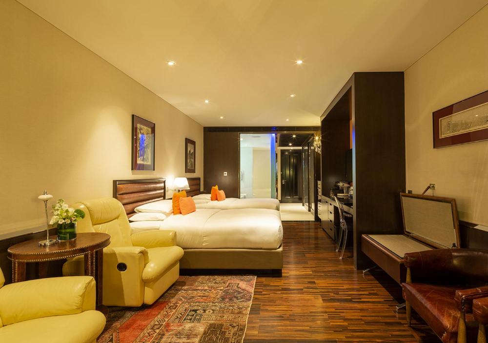 Die spektakuläre Glaskonstruktion bietet einen herrlichen Stadtblick und umweltfreundlich klimatisierte Zimmer. Alle Unterkünfte verfügen über 24-Stunden-Zugang zur Éclat Lounge mit einem kostenfreien Frühstücksbuffet und Erfrischungen. Ein 3D-LCD-TV mit Blu-Ray-DVD-Player, iPod-Dockingstationen, Marken-Massagesessel und ein Audiosystem von Bang & Olufsen sind vorhanden. Die herrlichen Badezimmer sind mit separaten Regenduschen, Badewannen und exklusiven Pflegeprodukten von Miller Harris London ausgestattet.