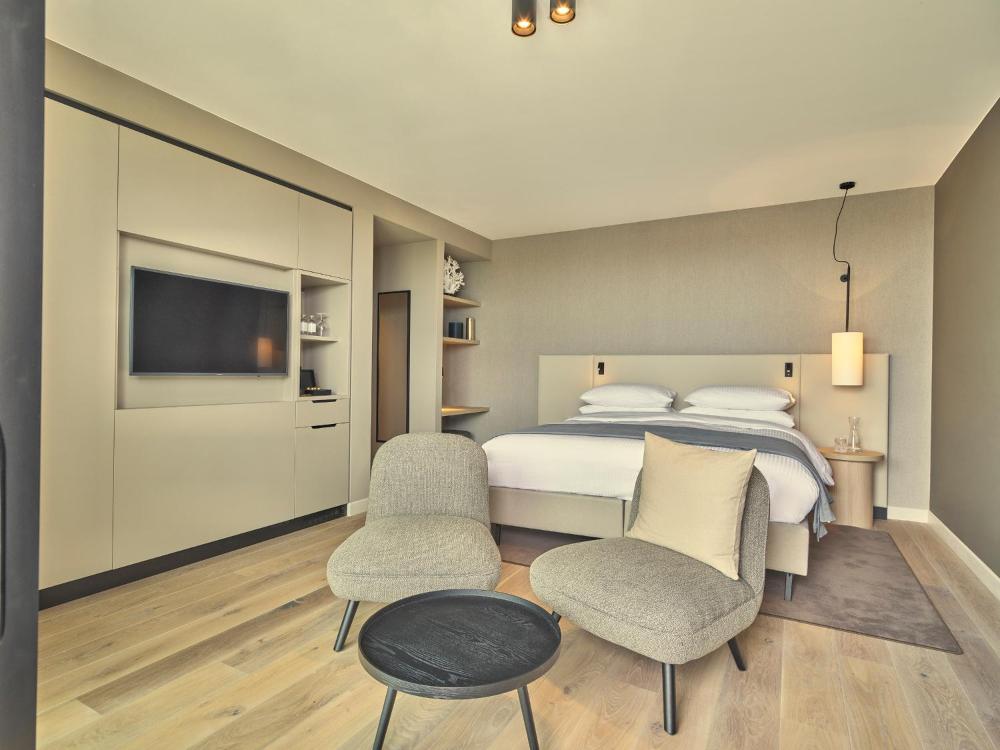 Die Zimmer sind mit einem Flachbild-TV und einem modernen Bad ausgestattet. Jedes Zimmer verfügt über raumhohe Fenster, die zum privaten Balkon führen.