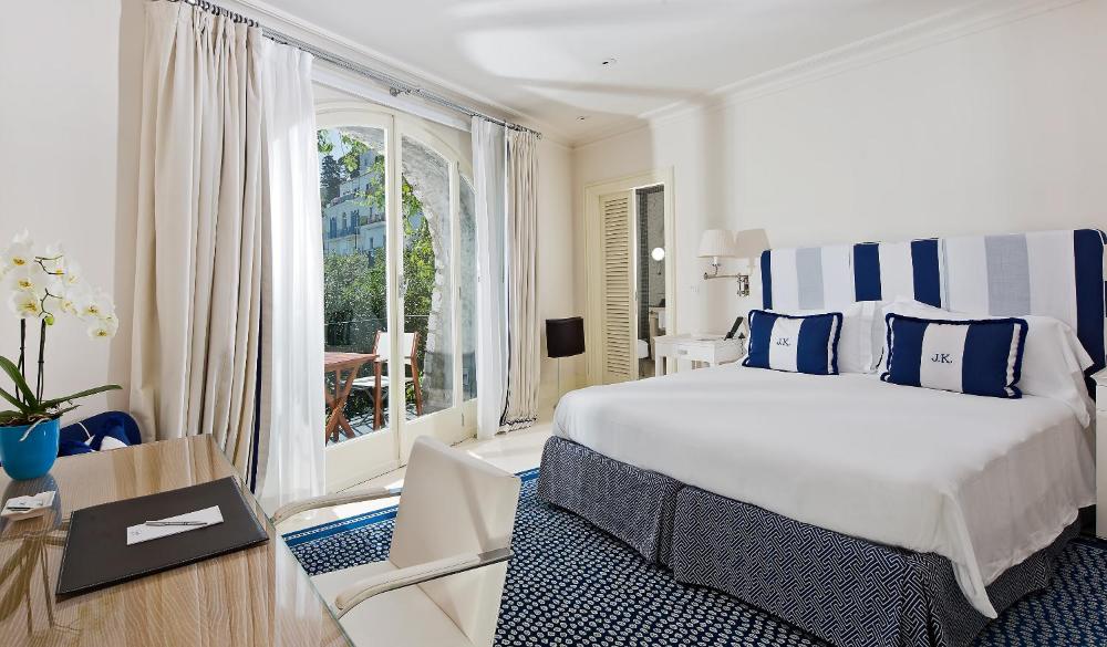 Freuen Sie sich auf ein angenehmes mediterranes Klima, eine ruhige Umgebung mit halbtropischer Vegetation und eine reiche Geschichte vereint mit der eleganten Atmosphäre und erstklassigem Komfort des J. K. Place. Die geräumigen Zimmer bieten Blick auf den angelegten Garten oder auf das herrliche Meer.