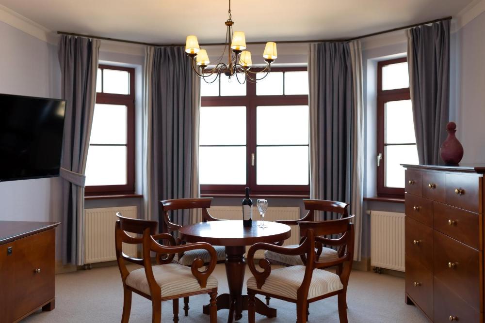 Rooms at Zamek Łeba Resort & Spa are decorated in a style inspired by the Polish interwar period. Each room is equipped with a TV. Selected rooms feature a minibar, balcony, and some offer scenic views of the Baltic Sea.