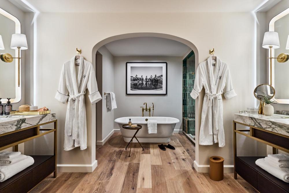 Die Unterkunft Bowie House, Auberge Resorts Collection, die in Fort Worth, 1 km von Dickies Arena entfernt gelegen ist, verfügt über Übernachtungsmöglichkeiten mit einem saisonalen Außenpool, einem Privatparkplatz, einem Garten und einer Gemeinschaftslounge. Dieses Hotel mit 5 Sternen und kostenlosem WLAN bietet einen Zimmerservice und eine rund um die Uhr besetzte Rezeption. Gäste können das Spa- und Wellnesscenter mit einer Sauna sowie einem Whirlpool und außerdem eine Terrasse nutzen.