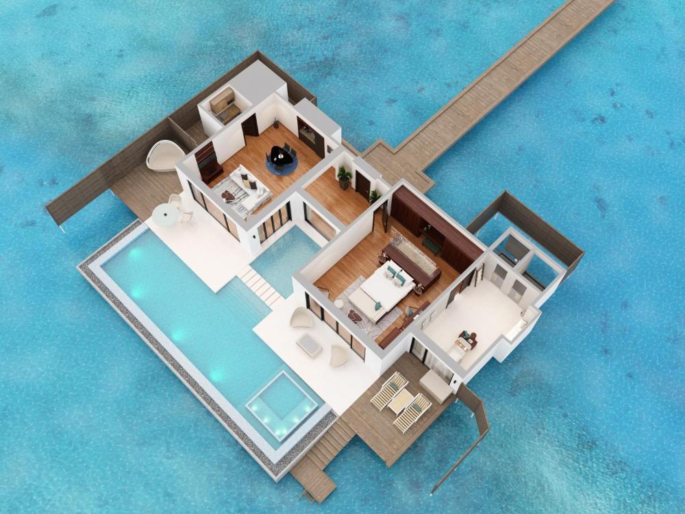 Deluxe Poolvilla über dem Wasser190m²1 großes Doppelbett TV Klimaanlage Eigenes Badezimmer Flachbild-TV | Sie müssen Ihre Buchungsdaten ändern | |