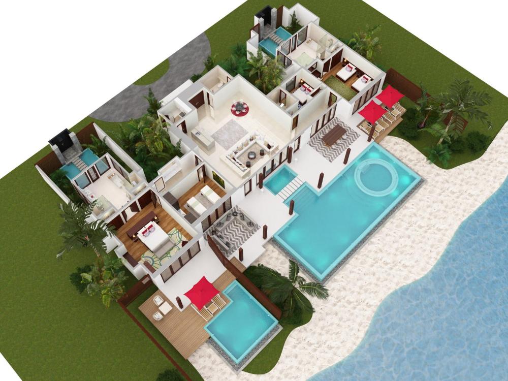 Poolpavillon am Strand mit 3 Schlafzimmern770m²1 Einzelbett, 1 großes Doppelbett TV Klimaanlage Eigenes Badezimmer Flachbild-TV | Sie müssen Ihre Buchungsdaten ändern | |