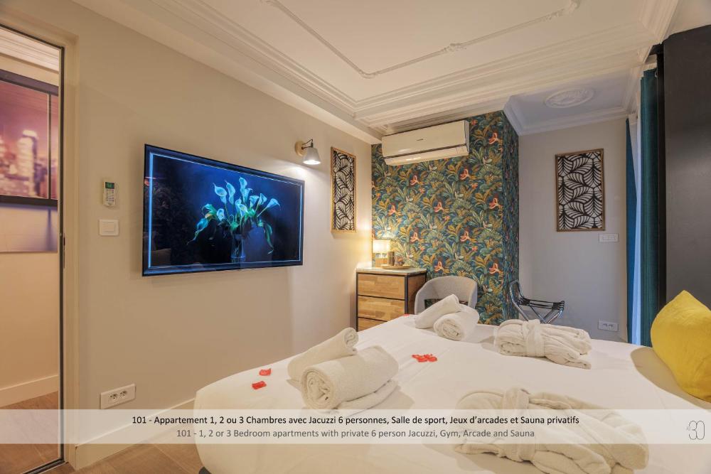 Suite with Jacuzzi Hammam34m²Zimmer 1 : 1 Doppelbett TV Klimaanlage Eigenes Badezimmer Flachbild-TV Schallisolierung Stadtblick | Sie müssen Ihre Buchungsdaten ändern | |