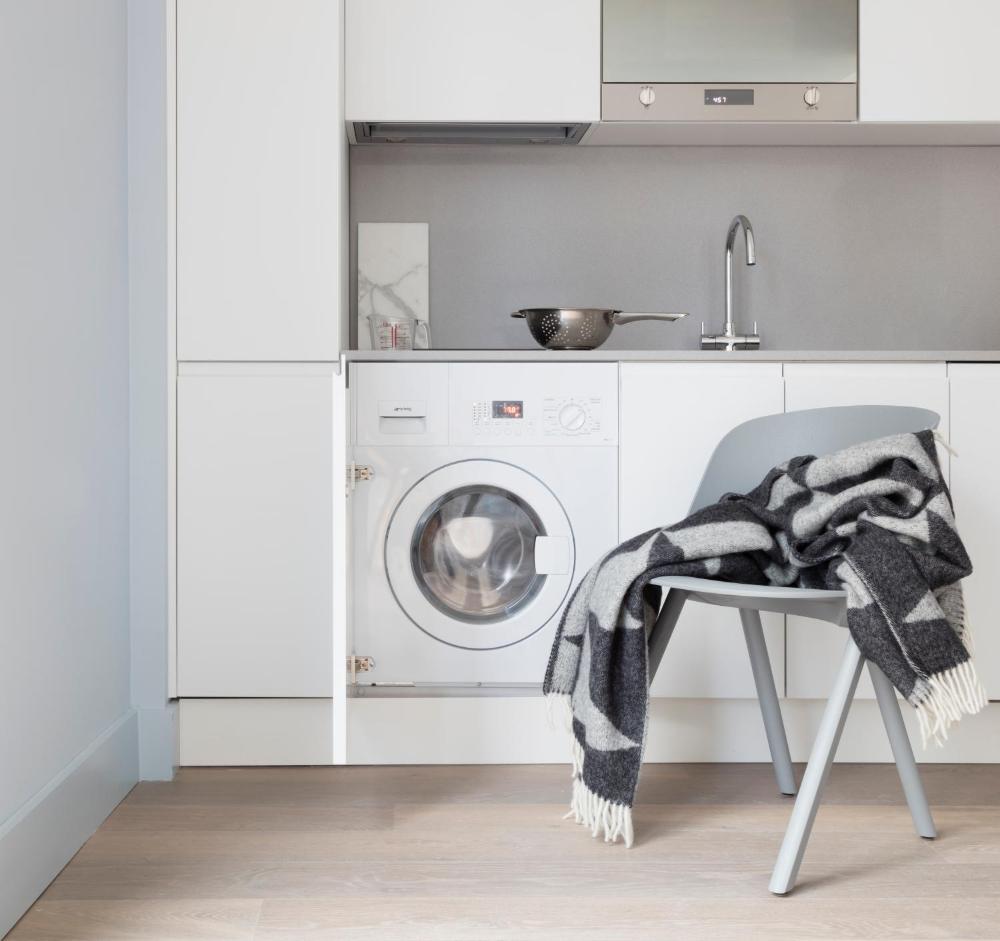 Die voll ausgestattete Küche umfasst eine Waschmaschine, einen Geschirrspüler, einen Backofen, einen Kühlschrank, eine Mikrowelle und einen Toaster. Geschirr und Besteck sind ebenfalls vorhanden. Das eigene Bad ist mit einer Regendusche, kostenfreien Pflegeprodukten und einem Haartrockner ausgestattet.