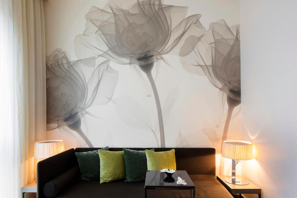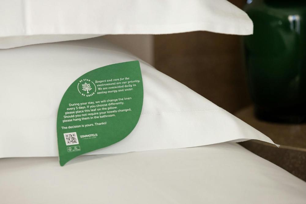 Die Zimmer des Starhotels Echo sorgen zudem mit elegantem Parkett und modernem Mobiliar für Komfort. Alle klimatisierten Zimmer wurden so entworfen, dass Energie und Wasser auf nachhaltige Weise genutzt werden.