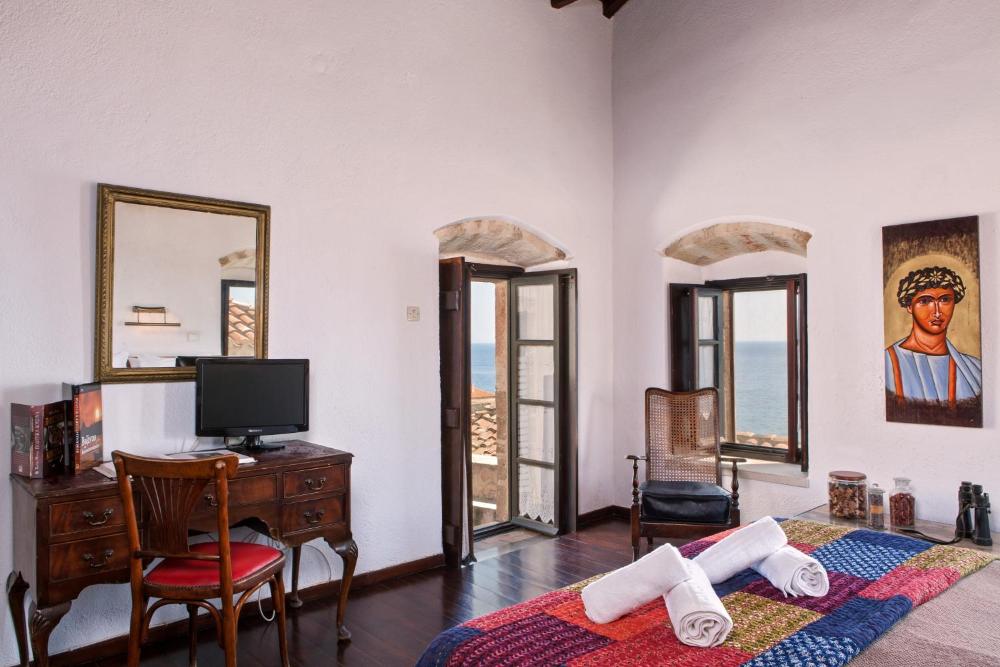 Das Byzantino Boutique Hotel mit Panoramameerblick befindet sich in günstiger Lage und bietet verschiedene Zimmer in der Festung von Monemvasia. Hier erwarten Sie eine traditionelle Architektur, elegante Zimmer und eine Café-Bar.