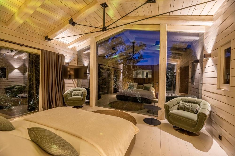 Suite Perchée avec Baignoire Extérieur35m²Zimmer 1 : 1 großes Doppelbett TV Klimaanlage Eigenes Badezimmer Flachbild-TV Schallisolierung | Sie müssen Ihre Buchungsdaten ändern | |