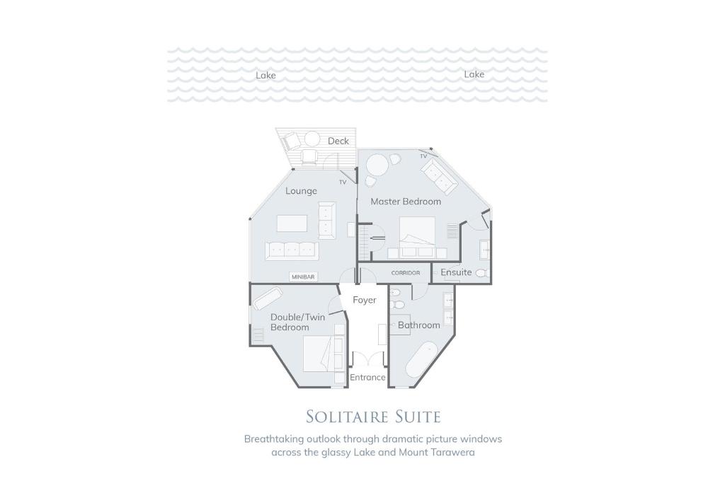 Die geräumigen, modern gestalteten Suiten sind stilvoll eingerichtet. Sie genießen Aussicht auf den See, die Lagune oder den vulkanischen Gipfel des Mount Tarawera.