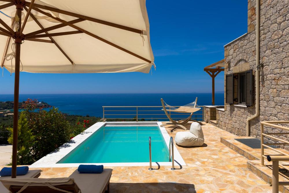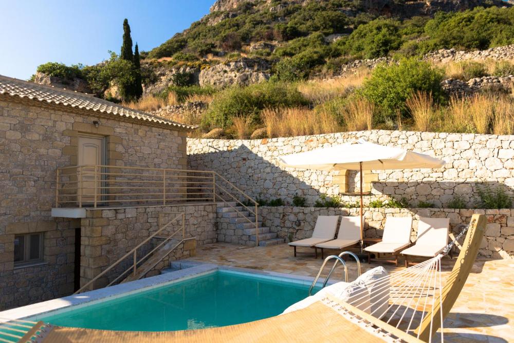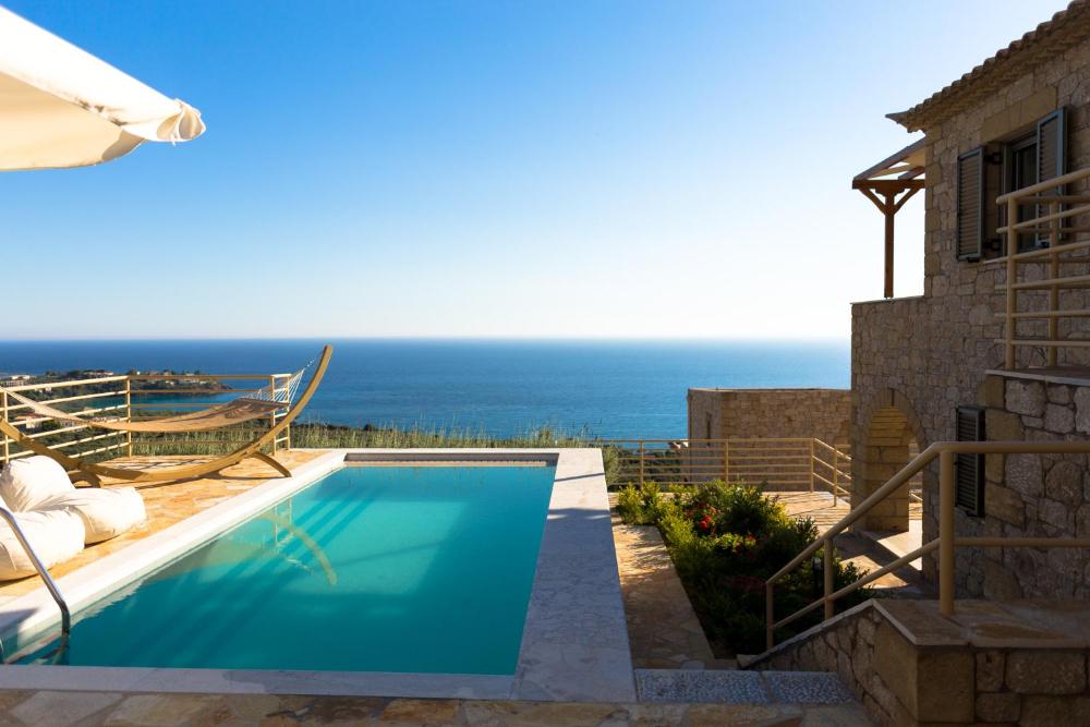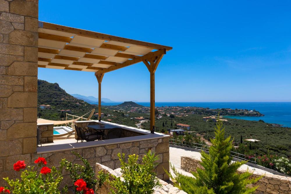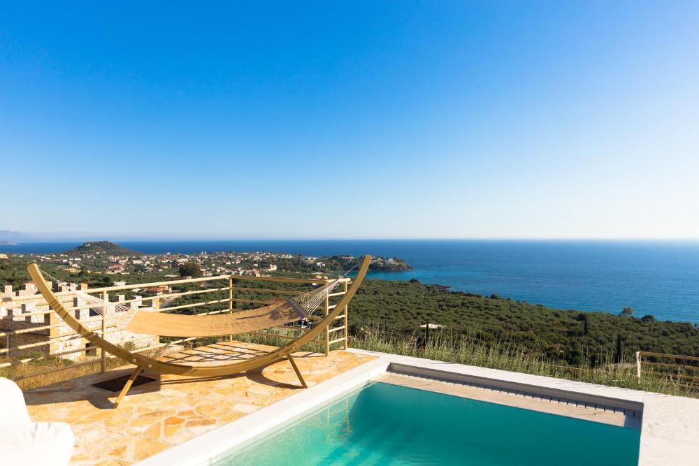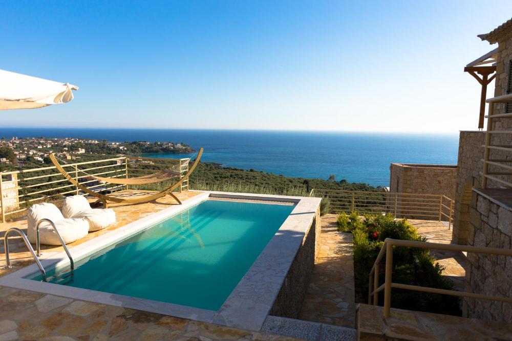 Die Tseralia Houses wurden aus Stein erbaut und begrüßen Sie auf einem großen Grundstück mit einem schönen Garten. Die Unterkunft befindet sich zwischen den Stränden von Kalogria und Delfinia. Jede Villa lockt mit uneingeschränkter Aussicht auf den Golf von Messina und bietet einen eigenen Meerwasserpool.