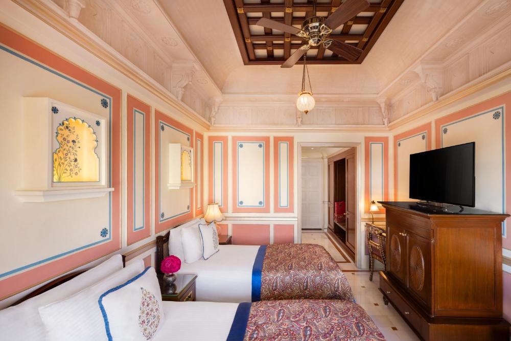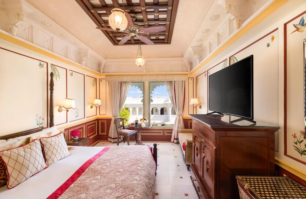 Das Taj Lake Palace verfügt über Zimmer mit schön geschnitzten Holzmöbeln und luxuriösen Seidenstoffen. Jedes Zimmer bietet Blick auf den Garten oder den See und verfügt über einen Flachbild-TV und einen DVD-Spieler.