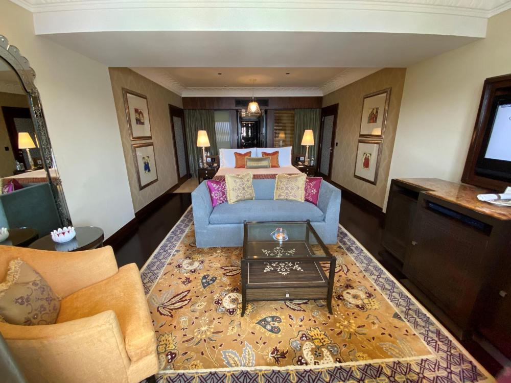 Die Zimmer sind in warmen Gold- und Rottönen gehalten und mit Werken lokaler Künstler und erlesenen indischen Teppichen geschmückt. Ein Flachbild-TV und eine iPod-Dockingstation gehören zur Ausstattung. Im Marmorbad erwarten Sie eine Badewanne und Premium-Pflegeprodukte.