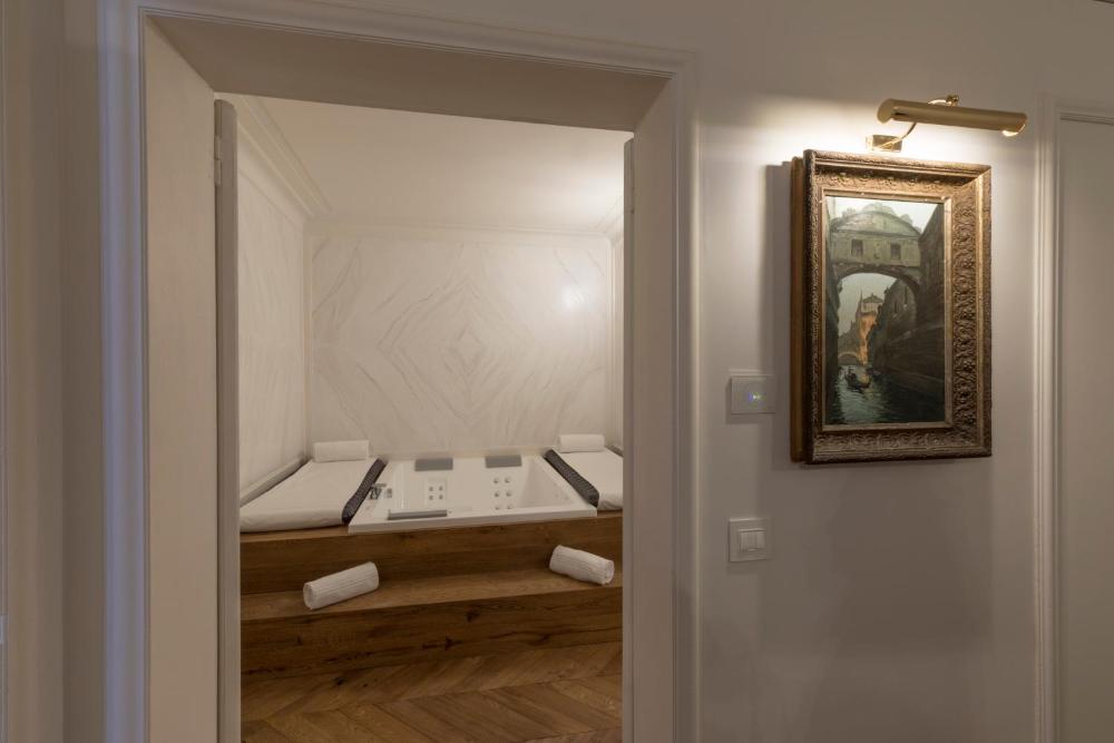 Die Zimmer im Paruta sind mit edlen Stoffen und antiken Möbeln ausgestattet. Alle Zimmer verfügen über kostenfreien Internetzugang (LAN), eine Minibar und Sat-TV. Einige bieten Ihnen Blick auf den Kanal oder den stilvollen Innenhof.