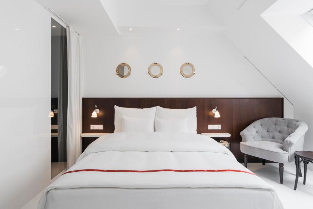 Die luxuriös eingerichteten Zimmer verfügen über Holzböden, Kirschholzvertäfelungen, edle Stoffe sowie ein sorgfältig arrangiertes Lichtkonzept. Zu den weiteren Annehmlichkeiten gehören Taschenfederkernmatratzen und übergroße Bettwäsche sowie ein Bad mit offenem Schnitt und einer Regendusche aus Glas, kostenfreien Pflegeprodukten und großen Handtüchern. Ein Marshall-Lautsprecher und ein 40-Zoll-Flachbild-TV sind ebenfalls vorhanden.