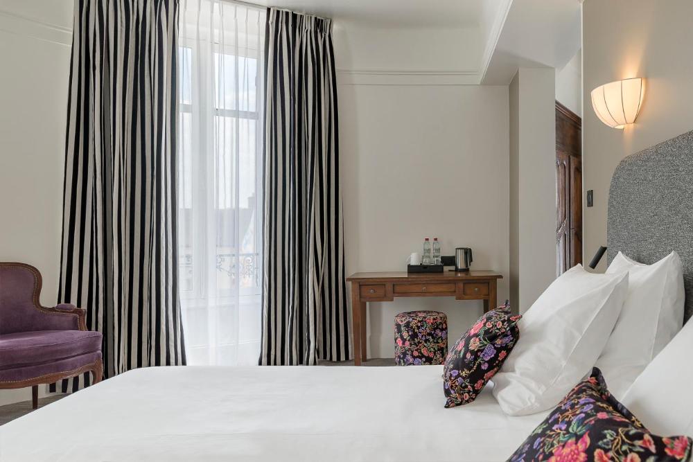 Decorated with period furniture matching stylish materials, the rooms present spacious and stylish living spaces fitted with modern private bathrooms. They offer a view of the garden or the city.