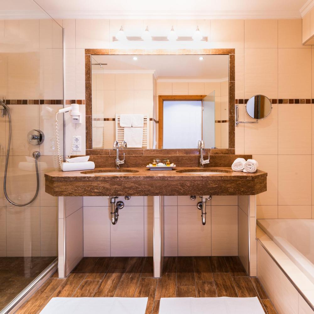 The spacious rooms are furnished a traditional or modern Tyrolean style. They feature a seating area, satellite TV, and a bathroom.