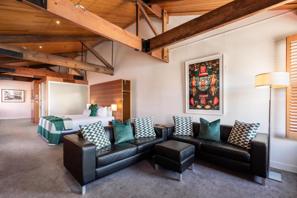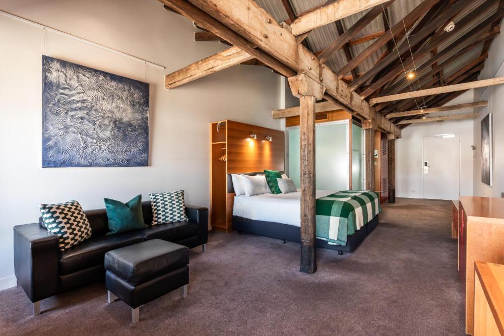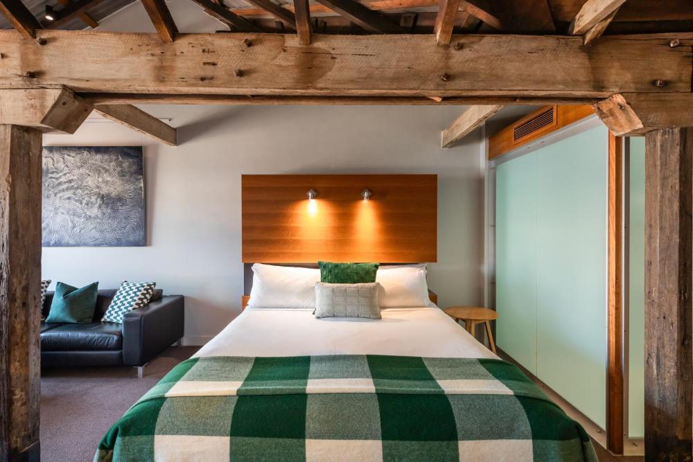 Sitting alongside Hobart's waterfront, the historic Henry Jones Art Hotel offers luxurious rooms offering water or courtyard views. The hotel is set in a row of renovated 1820s warehouses and a former IXL jam factory. It offers a bar and boasts a variety of original artworks throughout the property.