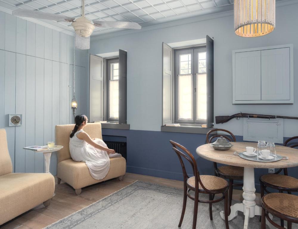 All rooms and suites in Apeiros Chora have views over the garden and the mountain. They are fitted with a satellite, flat-screen TV and a private bathroom with bathrobe and free toiletries. Some rooms feature a fireplace.