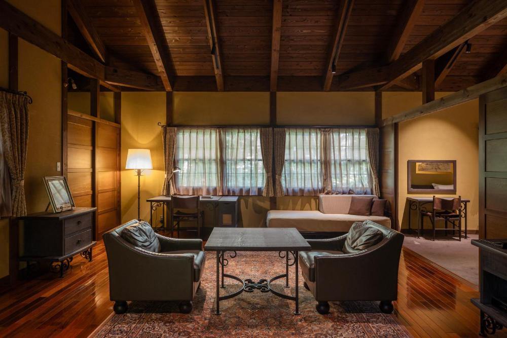 Spacious and stylish, the villas at Gosho Bessho pair traditional Japanese woodwork with modern furnishings. Rooms have a terrace with forest views. The peaceful hot-spring baths use Arima’s natural sources.