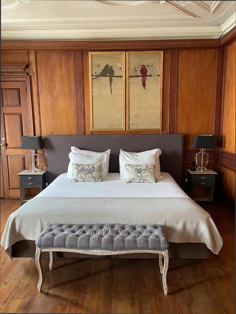Each spacious room of Palacio Ramalhete is decorated with antique furniture, a flat-screen TV and beautiful wooden floors. Most rooms have a view of the Tagus River. Unique details include stucco ceilings, oak walls or a fireplace with a copper roof.