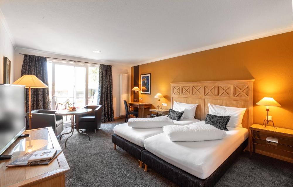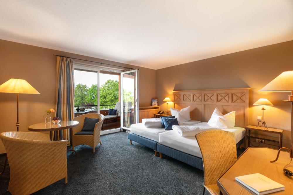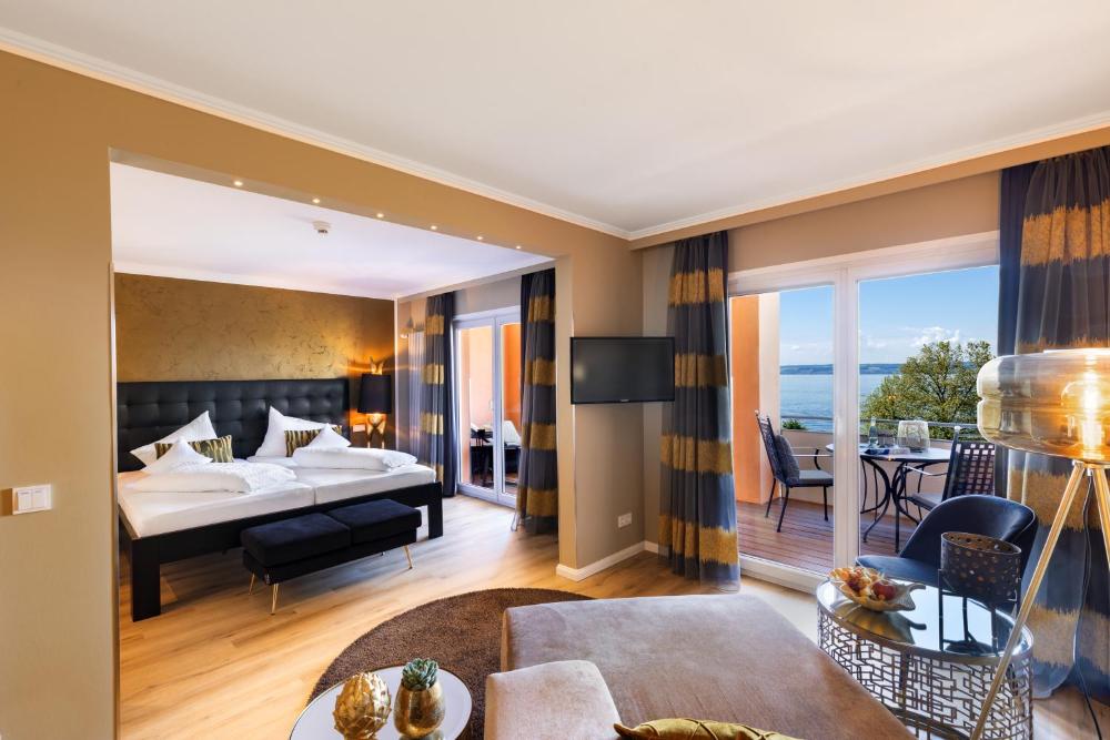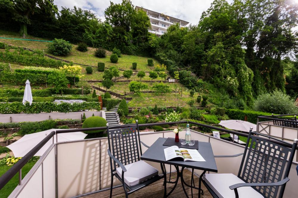 All rooms at the Romantik Hotel Residenz am See come with a TV, mini-bar and balcony. They offer views of either the surrounding vineyards or the lake.