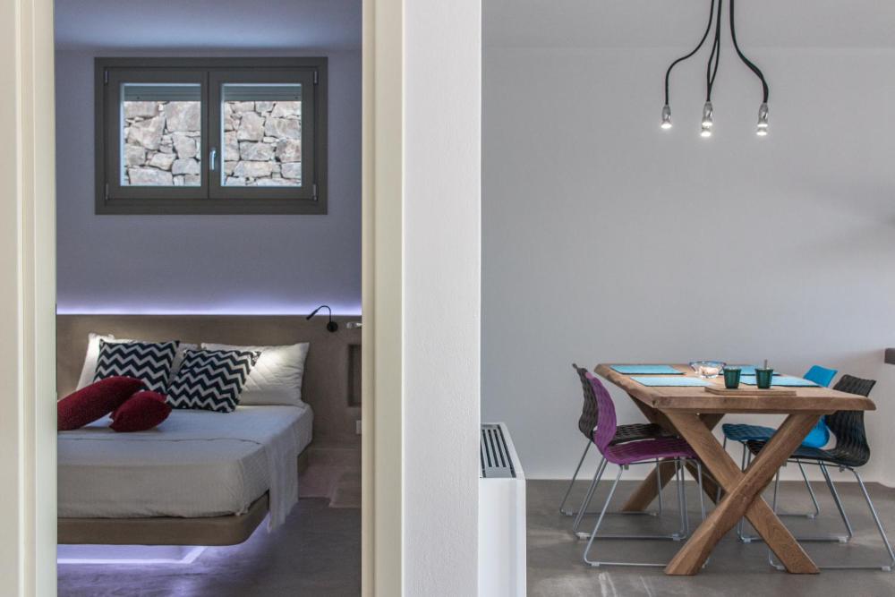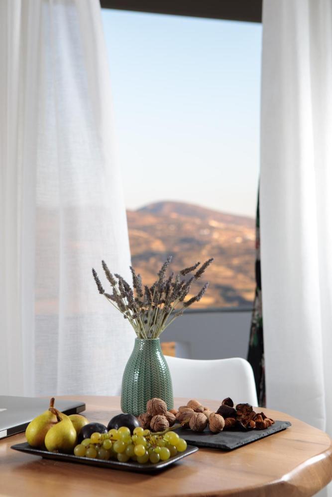 Combining traditional Cycladic style with modern touches, all whitewashed units feature mountain views and include a fully equipped kitchen, air-conditioning and a bathroom. Other facilities include a terrace and flat-screen TV with satellite channels. Some units come with horizontal hydromassafe facilities and smart home technology.
