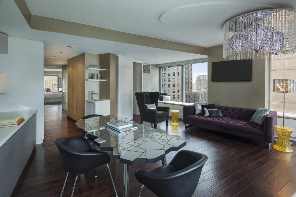 The Living Room, a modern cocktail lounge, offers an outdoor terrace and free Wi-Fi access. W New York--Downtown also features a tour desk and WIRED Business Center.