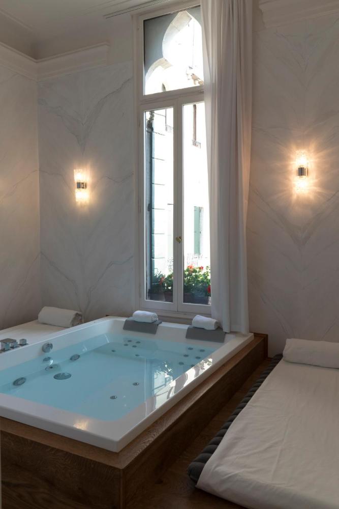 Rooms at the Paruta are decorated with fine fabrics and antique furniture. Each has free wired internet, a minibar, and a satellite TV. Some rooms offer views of the canal or the stylish internal courtyard.