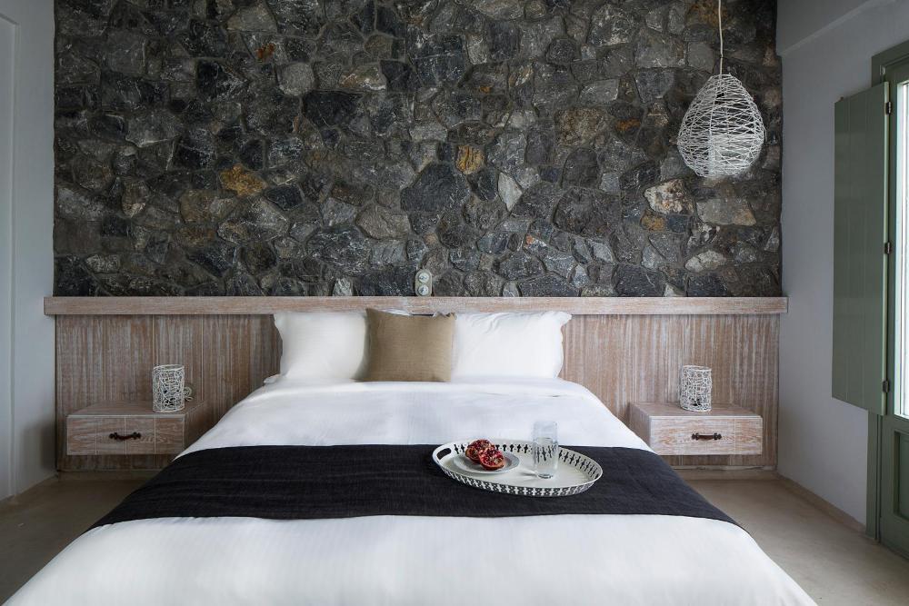 La decoración combina sillas Eames, materiales tradicionales y cálidos colores tierra en un auténtico ambiente isleño. La cocina incluye cafetera Nespresso y nevera Smeg, y se ofrece ropa de cama Coco-Mat y artículos de aseo Apivita.