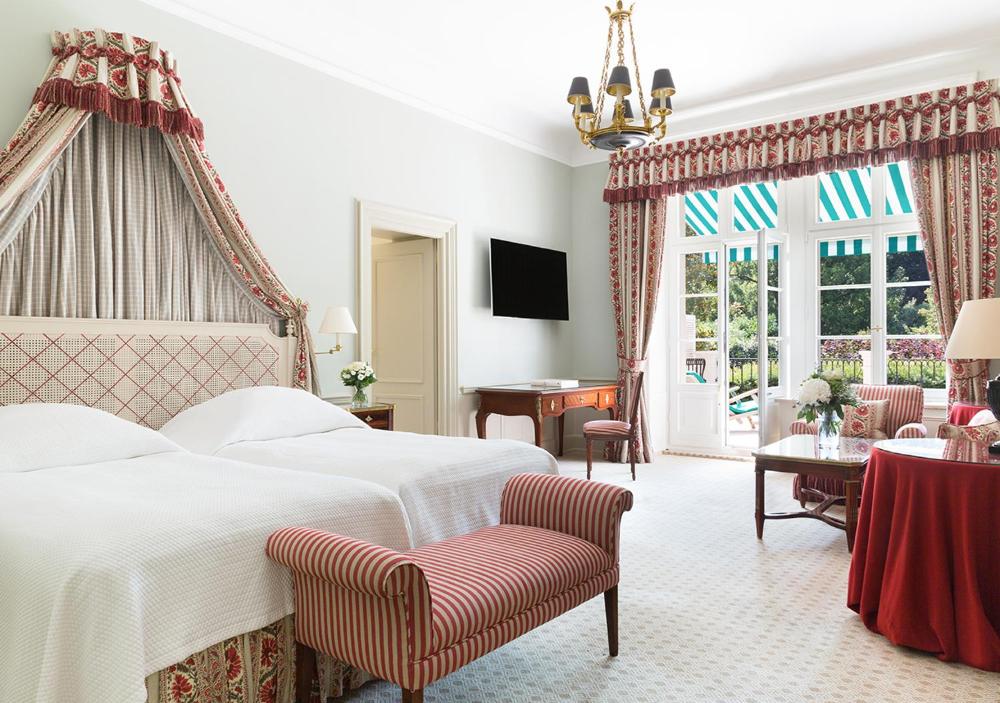El Brenners Park-Hotel & Spa dispone de habitaciones elegantes con muebles antiguos, balcón, TV vía satélite, minibar y un baño de mármol italiano.