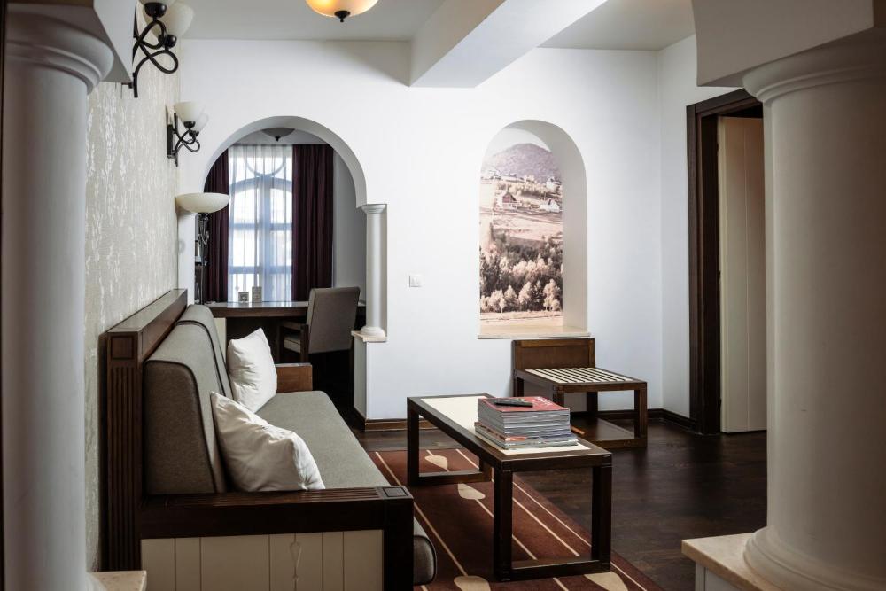 Los alojamientos presentan una decoración en tonos neutros con toques de diseño exclusivos inspirados en la arquitectura neorrumana. Algunos tienen un balcón francés y vistas al jardín.