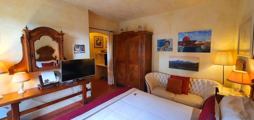 Todas las habitaciones del Capovento tienen una decoración de estilo clásico y muebles antiguos toscanos. Además, disponen de Wi-Fi gratuita, TV de pantalla plana con canales vía satélite y por cable y un balcón.