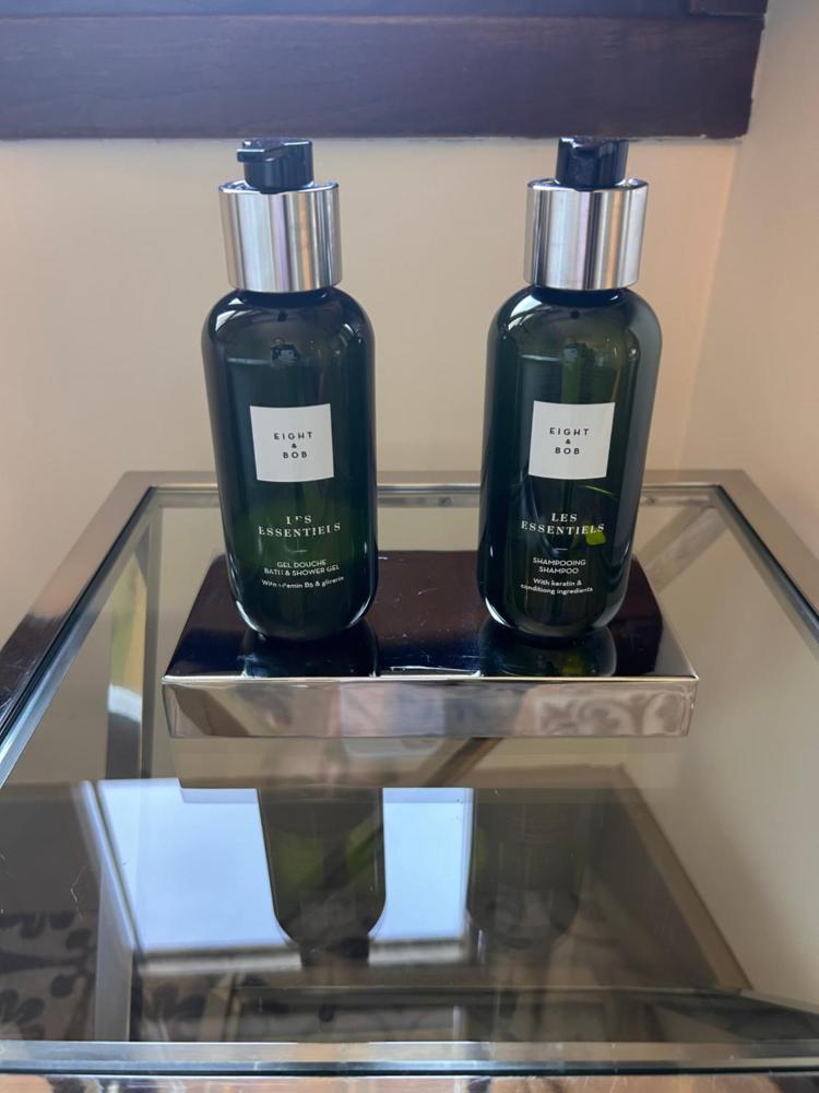 Las habitaciones, amplias y elegantes, ofrecen vistas al campo de los alrededores. Todas cuentan con cafetera Nespresso, minibar, TV de 48 pulgadas, una tablet y WiFi gratuita. El baño privado está equipado con secador de pelo, albornoces, zapatillas y artículos de aseo Hermès.
