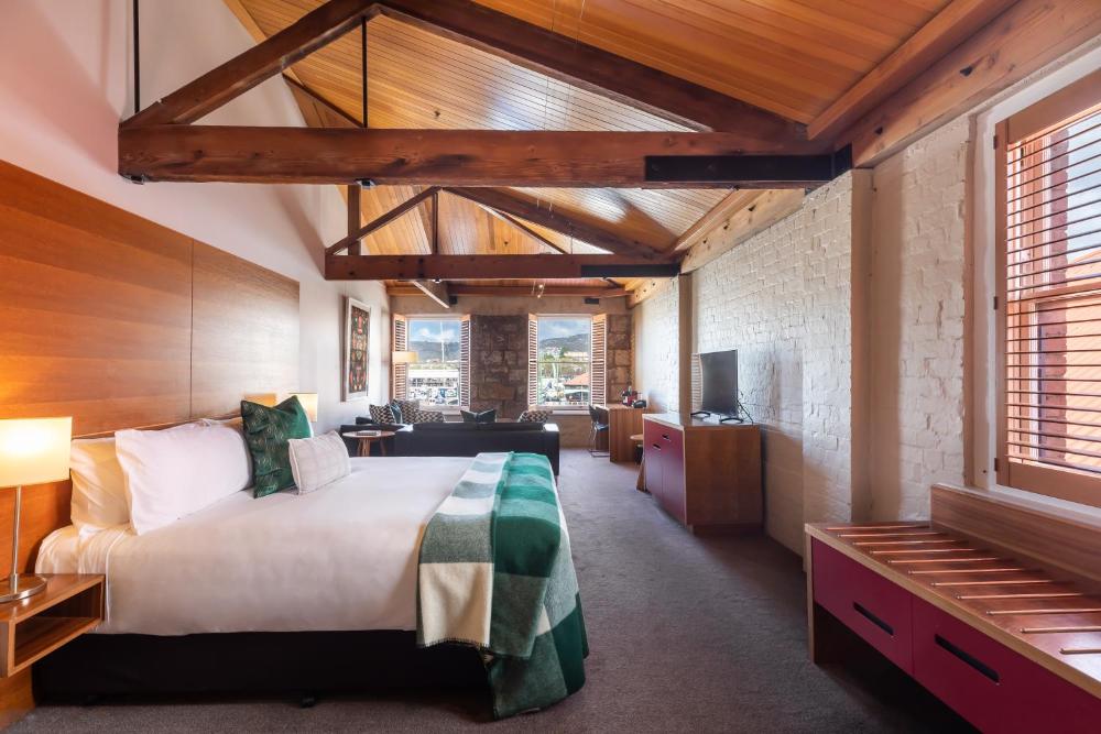 Sitting alongside Hobart's waterfront, the historic Henry Jones Art Hotel offers luxurious rooms offering water or courtyard views. The hotel is set in a row of renovated 1820s warehouses and a former IXL jam factory. It offers a bar and boasts a variety of original artworks throughout the property.