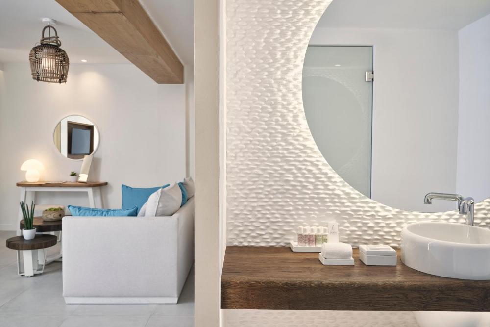 El hotel ofrece habitaciones con aire acondicionado, armario, cafetera, minibar, caja fuerte, TV de pantalla plana y baño privado con ducha. Cada habitación está equipada con hervidor, algunas ofrecen balcón y otras también tienen vistas al mar. En Nikki Beach Resort & Spa Santorini, todas las habitaciones tienen ropa de cama y toallas.