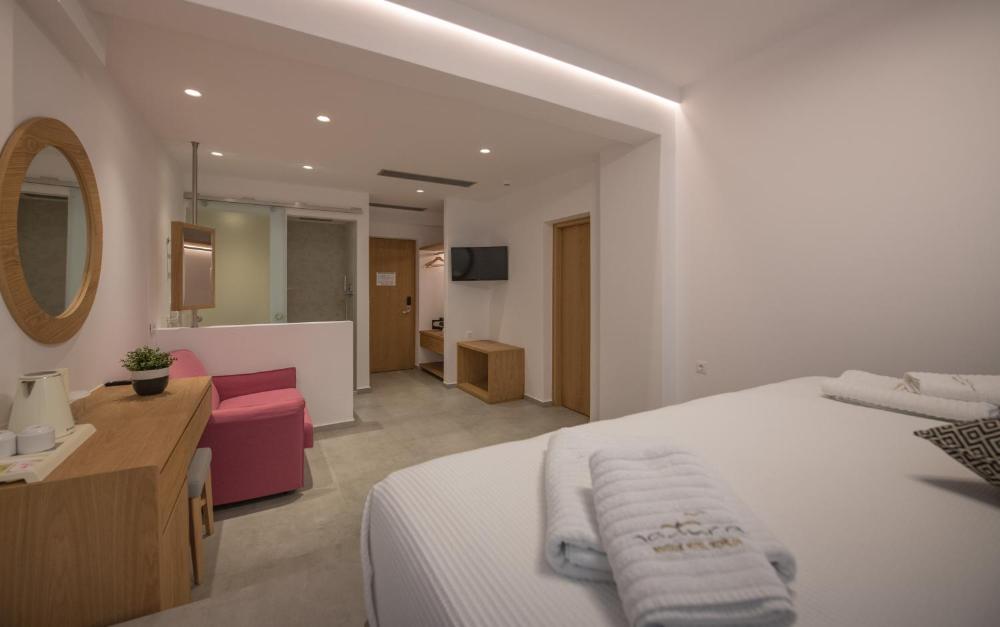 Las habitaciones del Natura Boutique, modernas y decoradas en tonos tierra, incorporan balcón o terraza. La mayoría goza de vistas al mar. Algunos alojamientos incluyen bañera de hidromasaje o piscina privada. Se proporciona aire acondicionado, TV de pantalla plana y minibar.