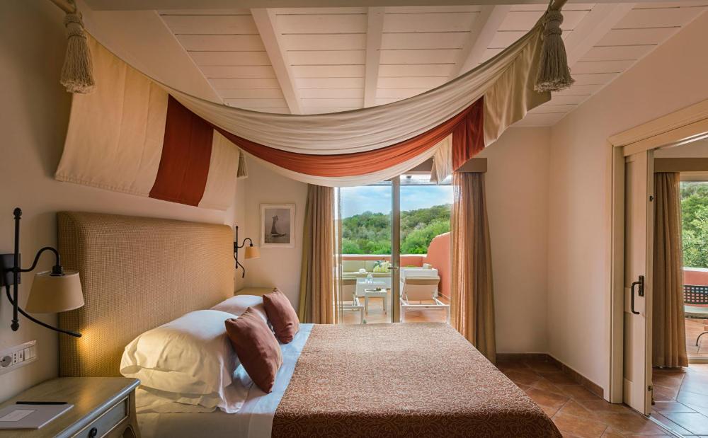 Las habitaciones son elegantes y disponen de balcón amueblado. La mayoría tiene vistas a la bahía de Pevero y otras gozan de vistas al verde entorno mediterráneo. Las habitaciones presentan suelo de cerámica y muebles de madera natural.