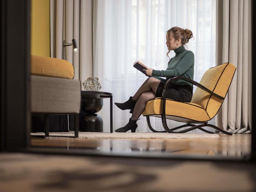 Suite Kafka con sofá y vistas a la ciudad - Cama extragrande54m²1 Cama doble extragrande TV Aire acondicionado Baño privado TV de pantalla plana Insonorización Vistas a la ciudad | Debe cambiar sus fechas de reserva | |