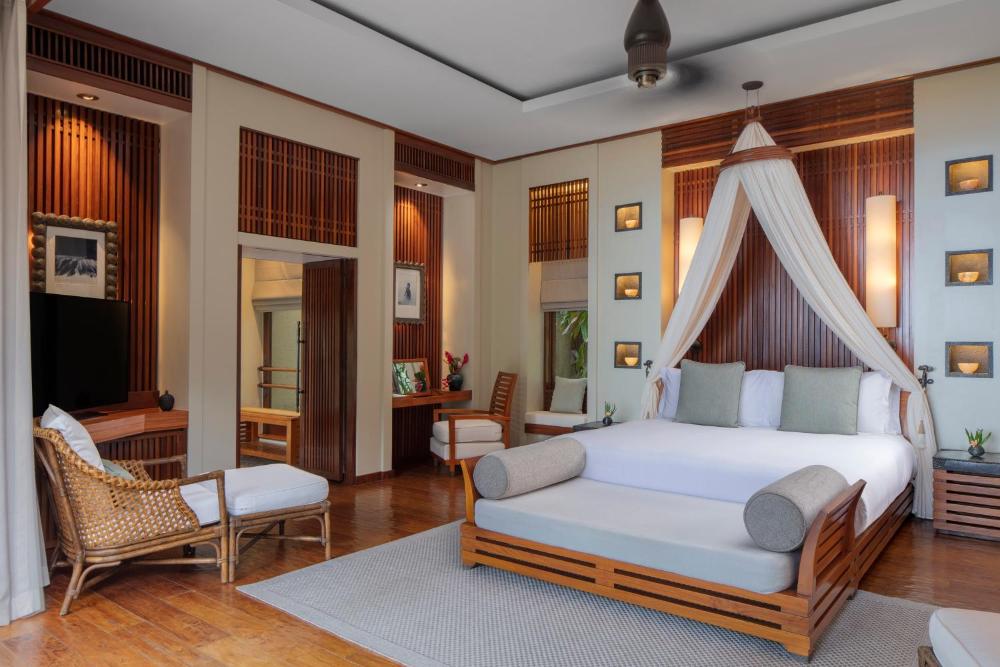 Each of Anantara Maia Seychelles Villa's air-conditioned villas offers a personalized dedicated butler, a private infinity swimming pool, free WiFi, a flat-screen TV and an Apple AirPort Express. They have a kitchenette, maxi-sized Hermès amenities, an outdoor gazebo and a sun deck.