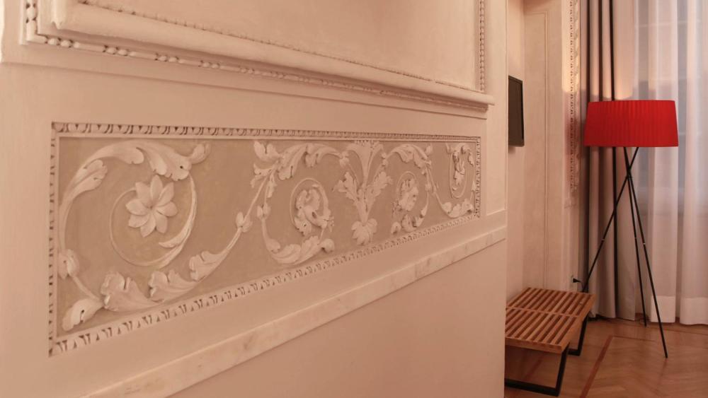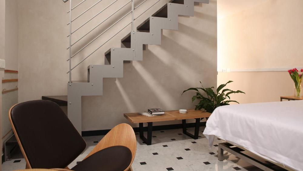 Les chambres à la décoration moderne de l'Hotel Le Nuvole Residenza d'Epoca sont pourvues d'un mobilier design. Elles sont toutes dotées de parquet, d'une télévision à écran plat et d'une salle de bains privative.
