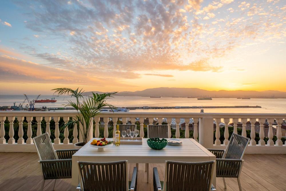 Le restaurant de l’hôtel offre une vue panoramique sur la baie de Gibraltar, l’Espagne péninsulaire et les montagnes marocaines du Rif.