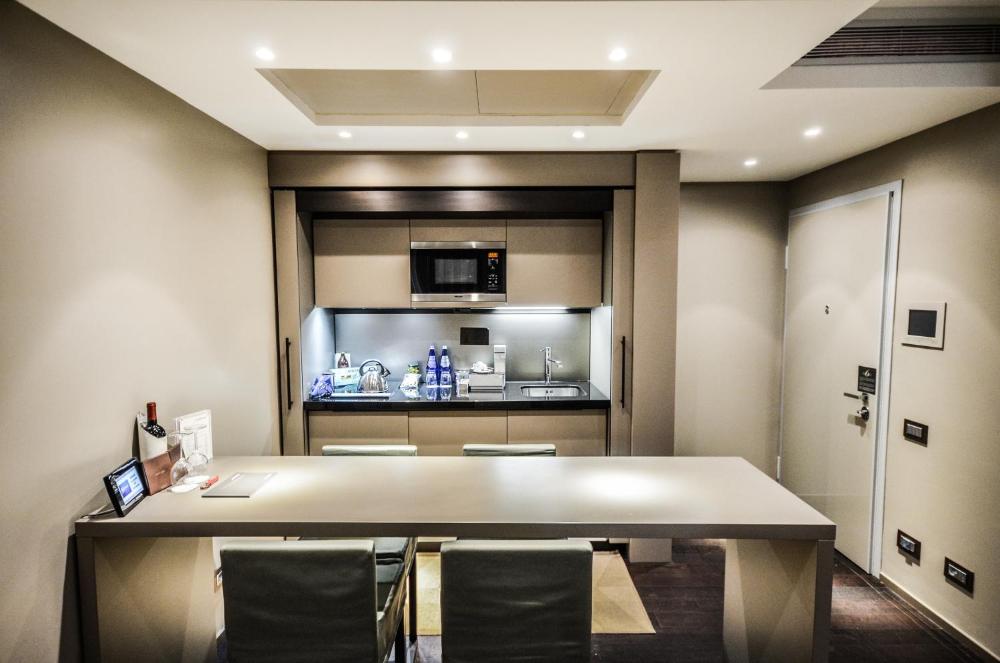 Présentant un luxueux mobilier Armani Casa, les suites possèdent toutes une kitchenette entièrement équipée avec un lave-vaisselle. Elles comprennent également un coin salon ou un salon muni d'un canapé relaxant et d'un système domotique avec commandes à écran tactile.