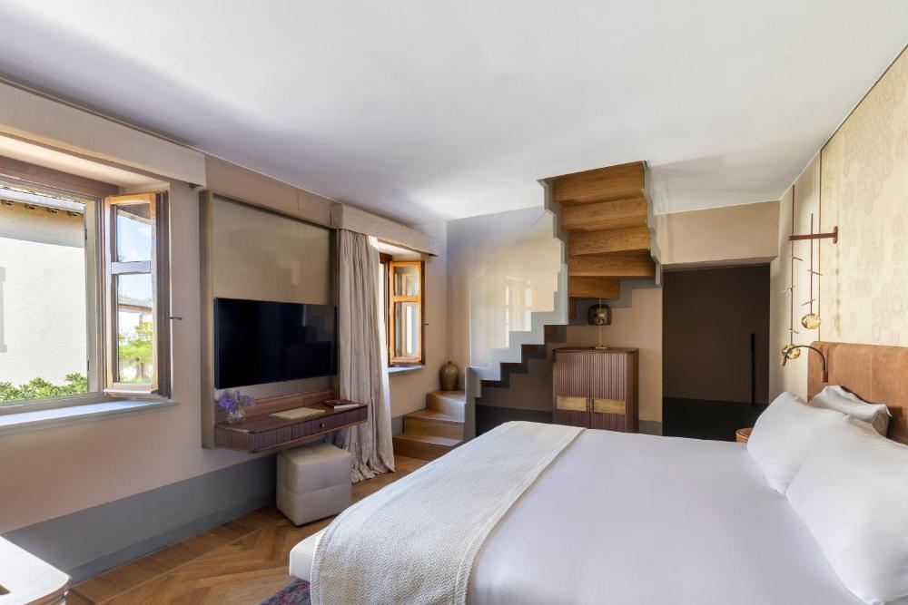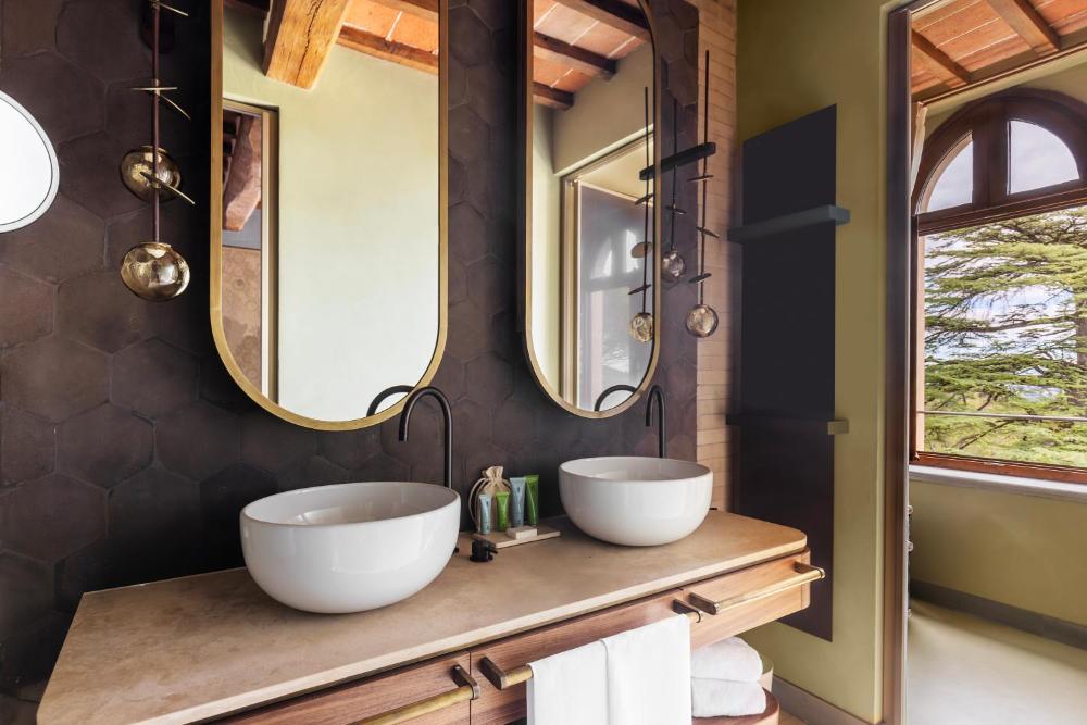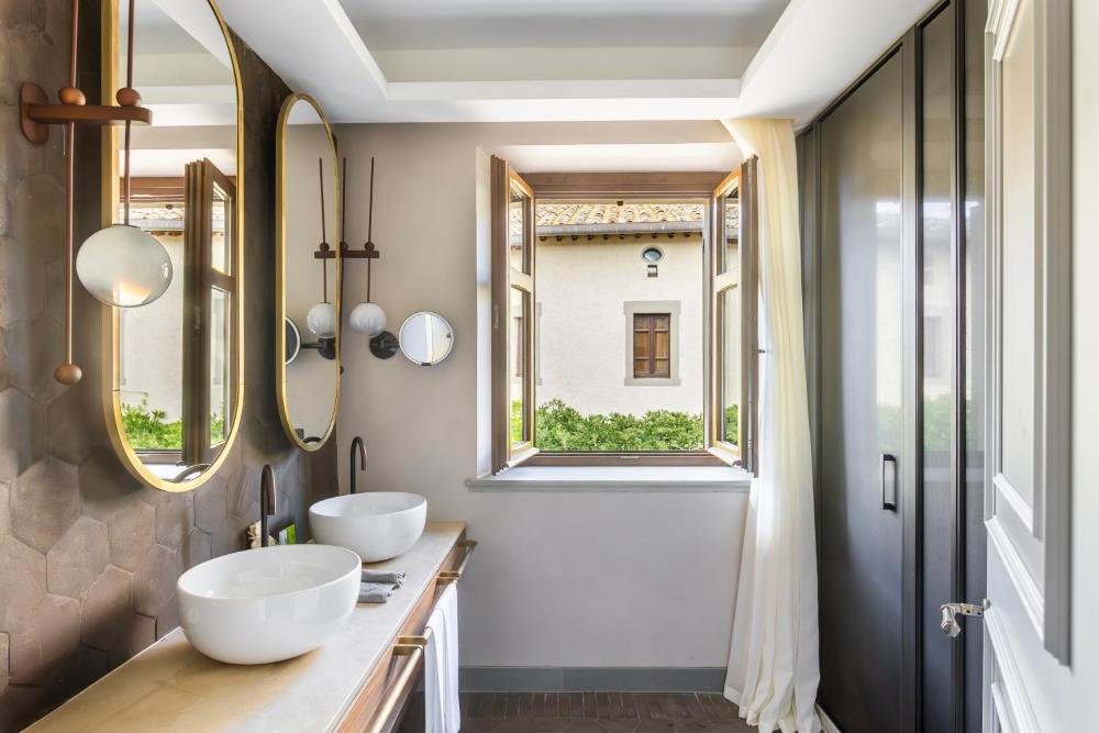Les chambres luxueuses et agréables du Borgo Dei Conti sont climatisées et disposent d'un mobilier en bois foncé, d'étoffes raffinées, d'une salle de bains moderne ainsi que d'une télévision à écran LCD.