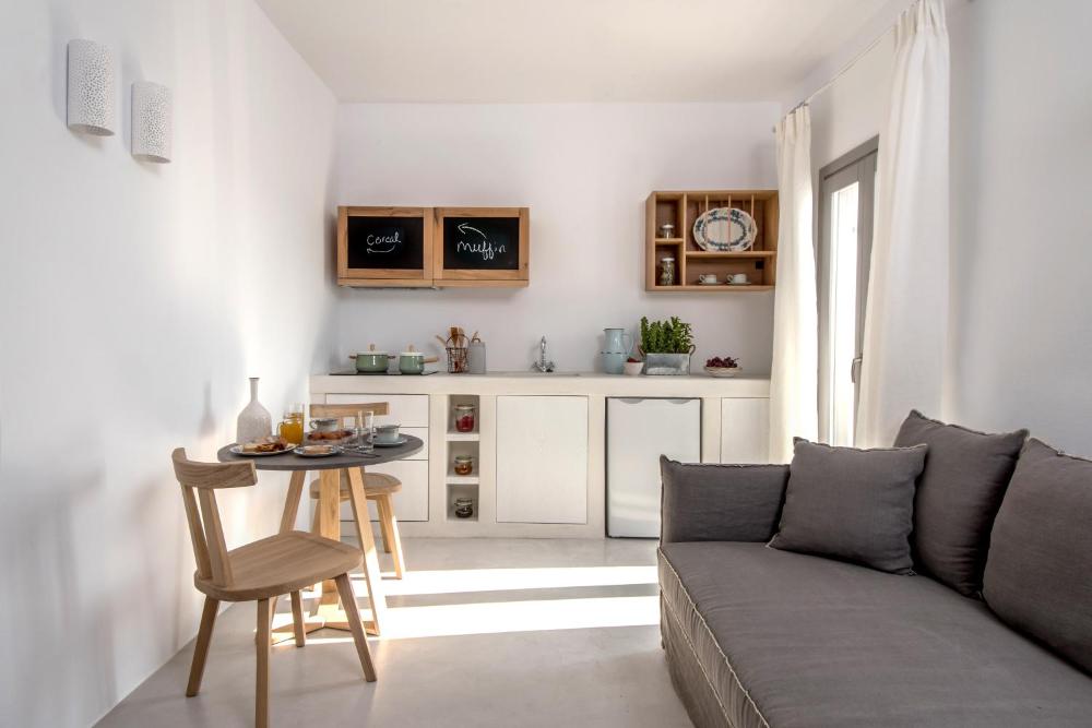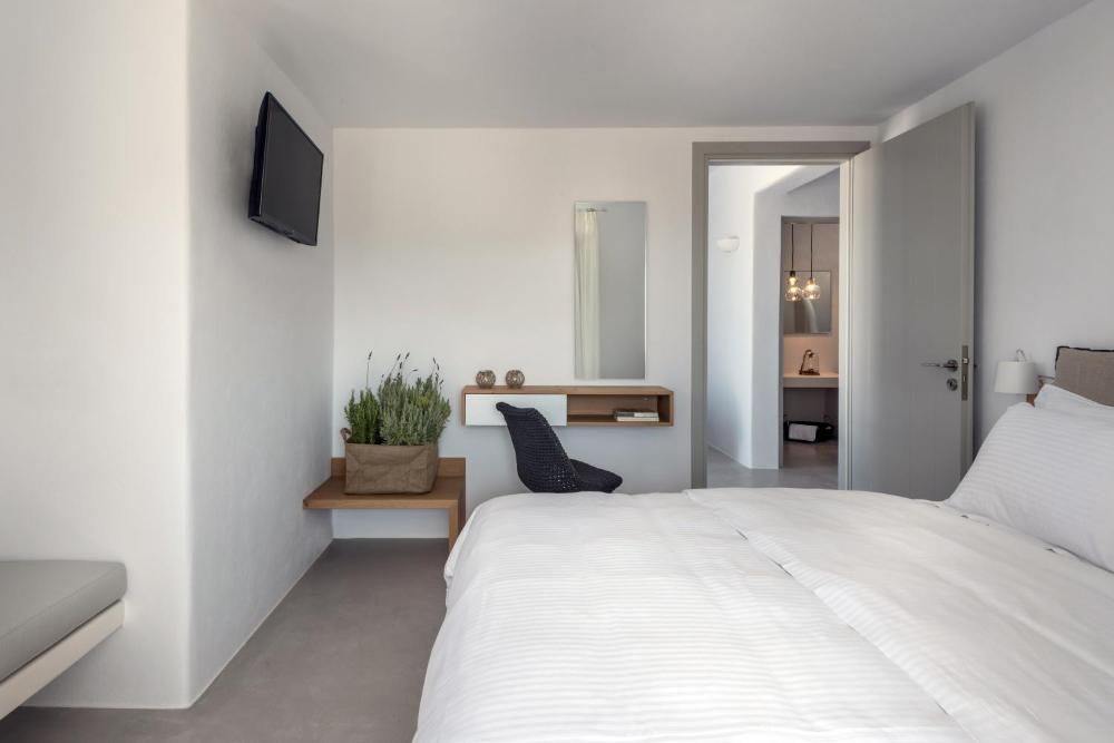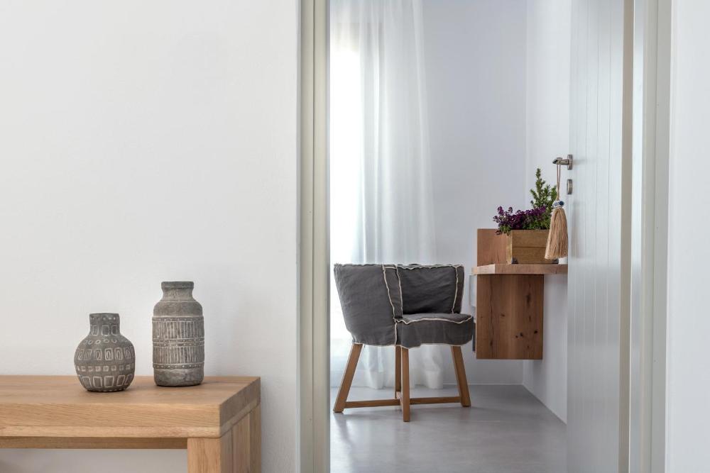 Tous les logements disposent d'une télévision par satellite à écran plat. La décoration reflète les caractéristiques du style des Cyclades. Les logements comprennent un salon, une cuisine, un coffre-fort et une salle de bains spacieuse. Leur salle de bains est pourvue d'un peignoir, de chaussons et d'articles de toilette.