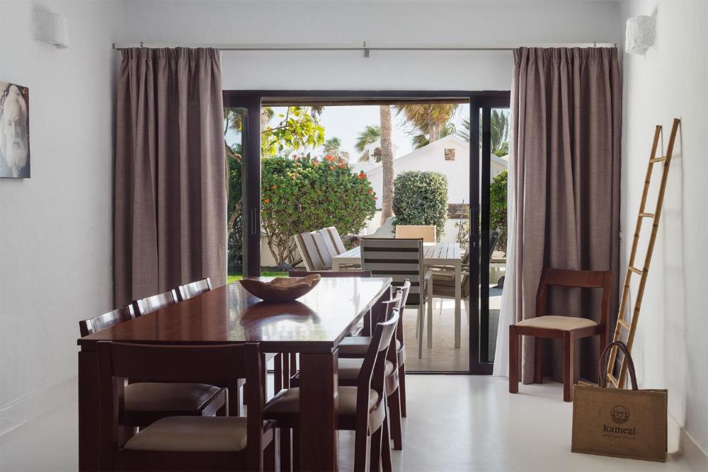 L'établissement possède un restaurant étoilé au guide Michelin, un bar à cocktails avec vue sur la mer, une boutique gastronomique, une épicerie, une réception ouverte 24h/24, une salle de sport, un spa et une boulangerie. L’établissement Kamezí Boutique Villas assure un service de location de voitures et de vélos.