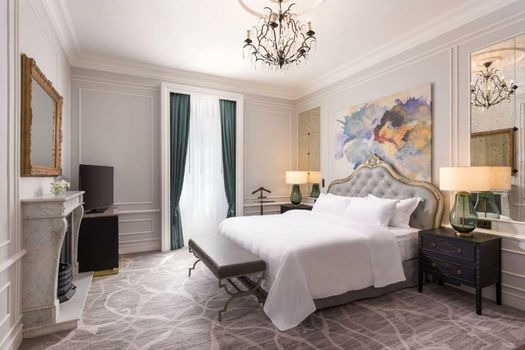 Décorées dans des tons gris, les chambres élégantes du María Cristina Hotel sont pourvues d'une connexion Wi-Fi gratuite, d'une télévision par satellite à écran plat, d'un mobilier en bois sombre et de la climatisation. La salle de bains en marbre comprend une baignoire et une douche à effet pluie séparées, une double vasque, un peignoir et des chaussons. Du linge de lit de 200 fils au pouce carré et des couettes en plumes sont fournis.