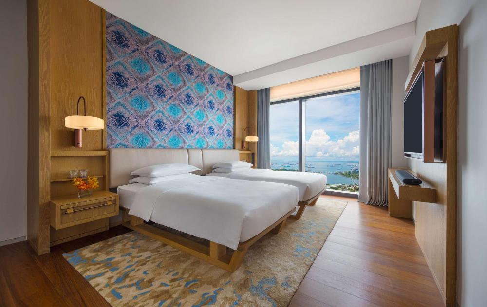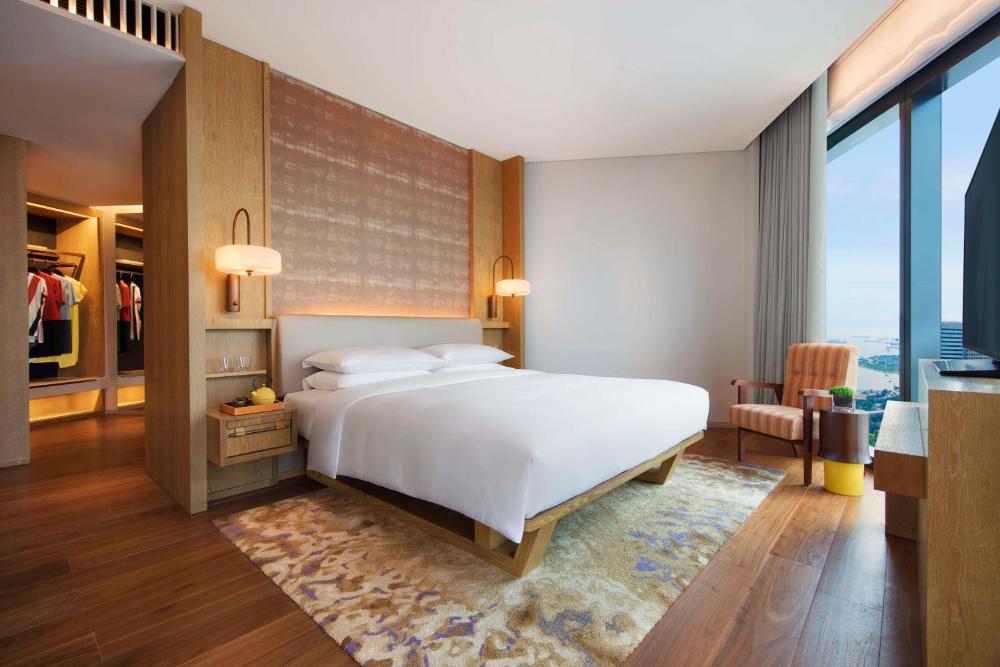 Décorées dans un style d'inspiration locale dans des tons chauds de cuivre et de moutarde, avec un parquet conçu par l'architecte Andre Fu, les chambres sont dotées de la climatisation, d'une baie vitrée offrant une vue sur la ville, d'une banquette-lit et de tapis moelleux. Le minibar est rempli de boissons sans alcool gratuites. La salle de bains privative est pourvue d'une douche à effet pluie.
