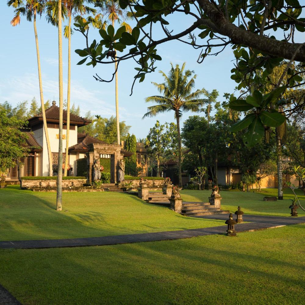 Surplombant le volcan Gunung Agung, le restaurant et le salon club servent des plats indonésiens et occidentaux à base d'ingrédients frais provenant des jardins du complexe. Vous pourrez ensuite savourer un cigare et une boisson au salon Bird, situé à côté de la volière du Tanah Gajah.