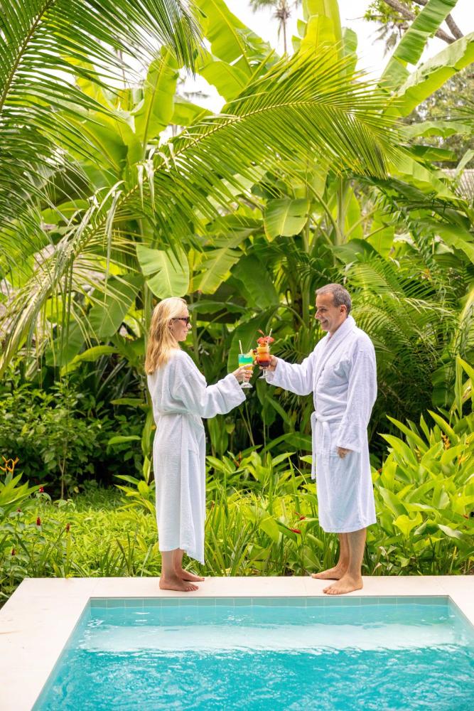 Our spacious villas provide an intimate retreat. Ocean-front villas and luxurious garden villas boast private patios with pools, a lush tropical garden, and gazebos adorned with flowing mosquito nets. Superior Garden Villas, nestled in the tranquil garden setting, feature their own plunge pools and are conveniently situated within close proximity to the main swimming pool.