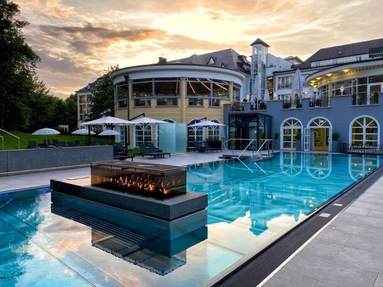 This 5-star hotel is located next to the spa park in Bad Wörishofen. It offers luxurious rooms, a large spa area, and 3 restaurants serving Bavarian and international food.